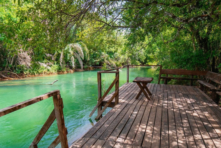 ✓ Usar os decks do outro lado do rio, propriedade particular do Hotel Cabanas.